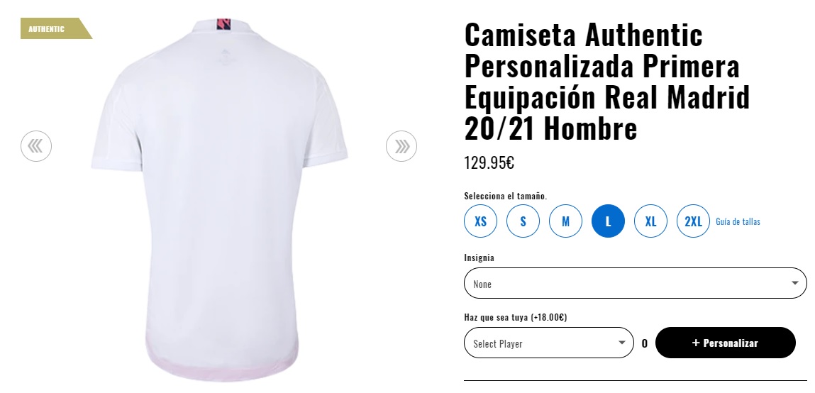 La camiseta de competición del equipo blanco tiene un coste de 130€ que llega a los casi 150€ con seriegrafía
