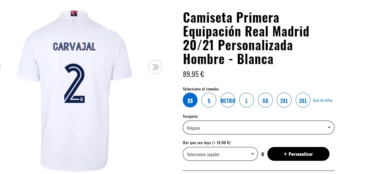 La réplica del club blanco tiene un coste de 90 € Con una seriegrafía de nombre y dorsal superaría los 100€ llegando a 108€ en total.