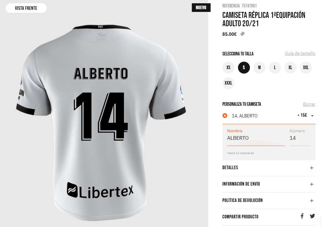 El equipo valencianista tiene en 85 € su camiseta, llegando a los 100€ por la seriegrafía.