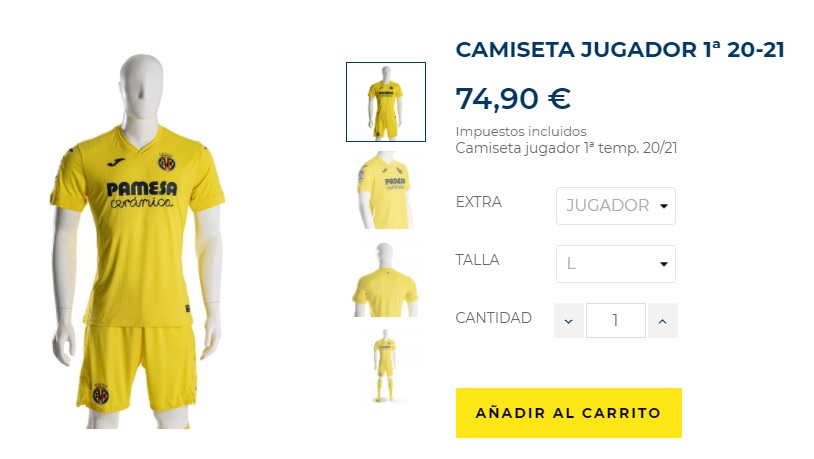 La camiseta 'más económica' de Primera División es la del submarino amarillo. La camiseta cuesta 54€ que pueden llegar 69€ con la seriegrafía