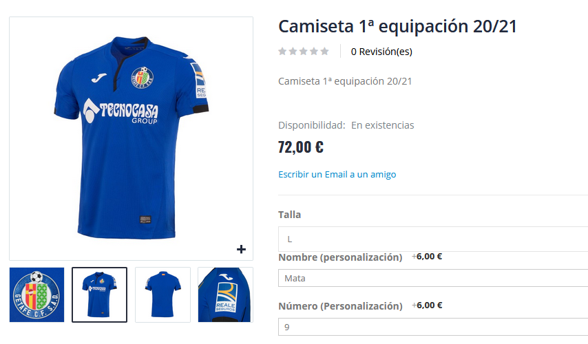 El equipo azulón puso su camiseta a 60 € y 6 euros de añadido si se quiere poner nombre, mismo coste por el dorsal.