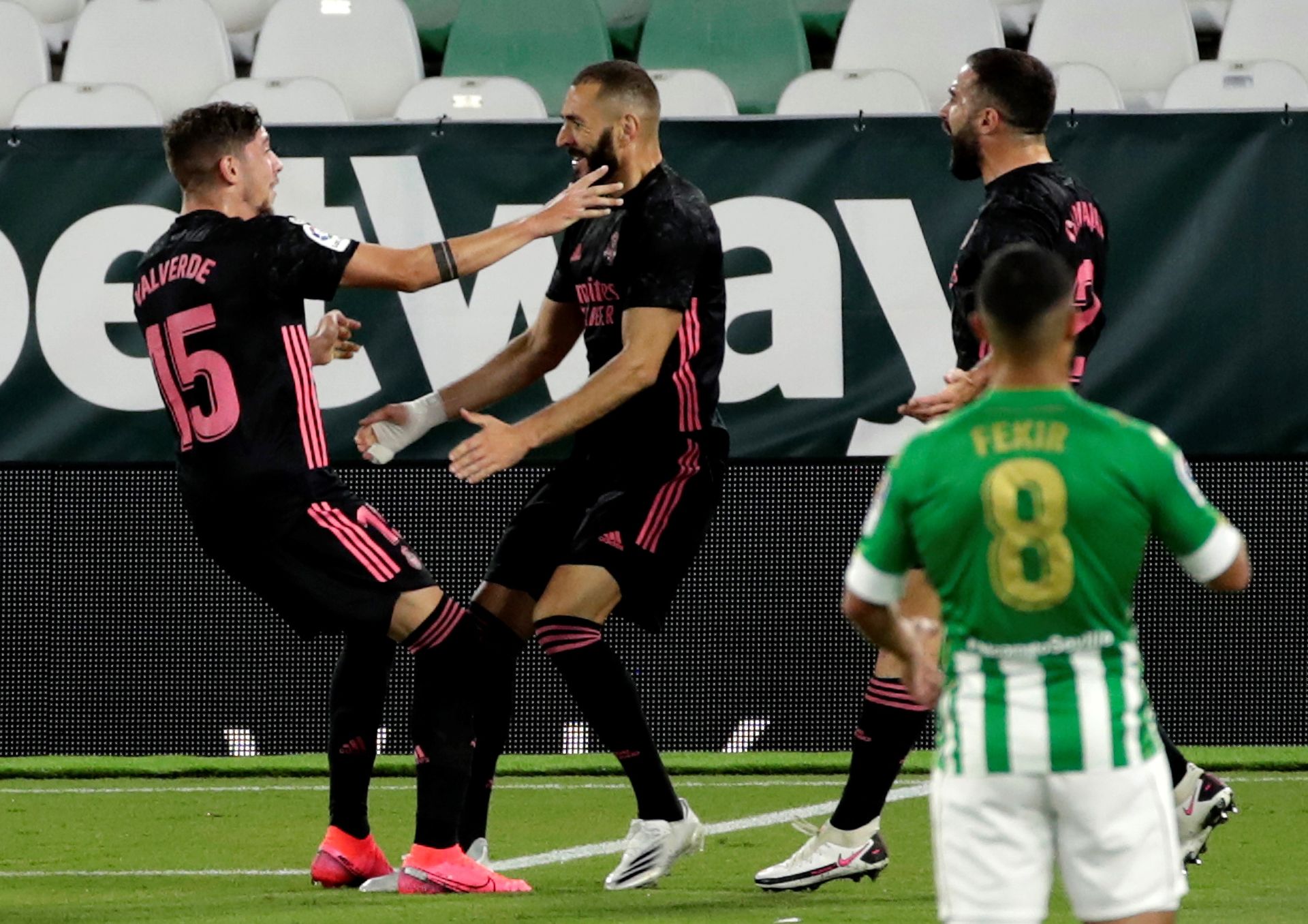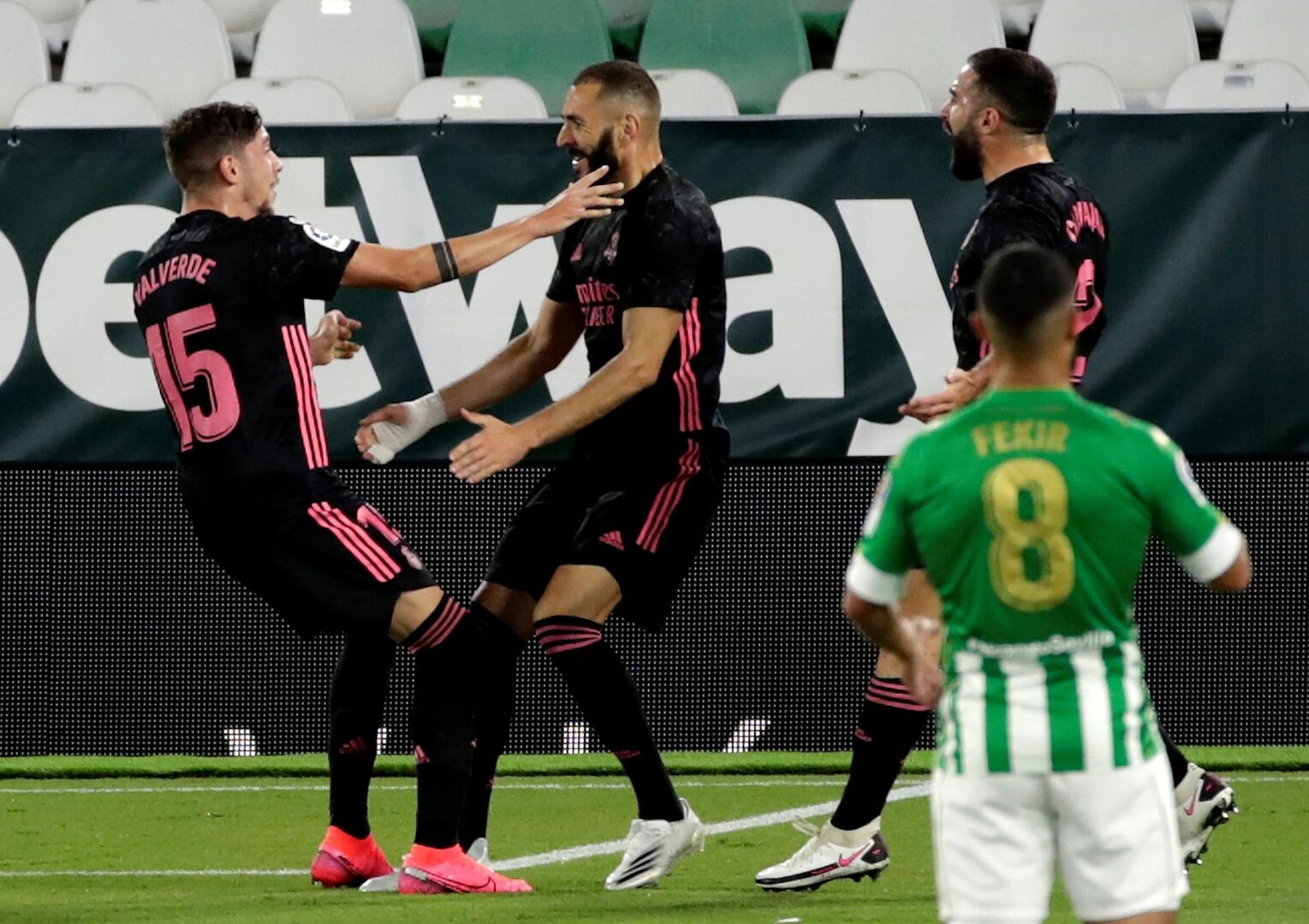 El partido comenzaba con un Real Madrid echado hacia delante. El equipo blanco iba con todo y con mucha calidad hacia la portería del Betis. La buscó hasta que la tuvo con el tanto de Valverde en el 13. Ya había avisado con un tanto que marcó Benzema en fuera de juego que no subía al marcador apenas unos instantes después de que pitara el colegiado el comienzo del encuentro.
