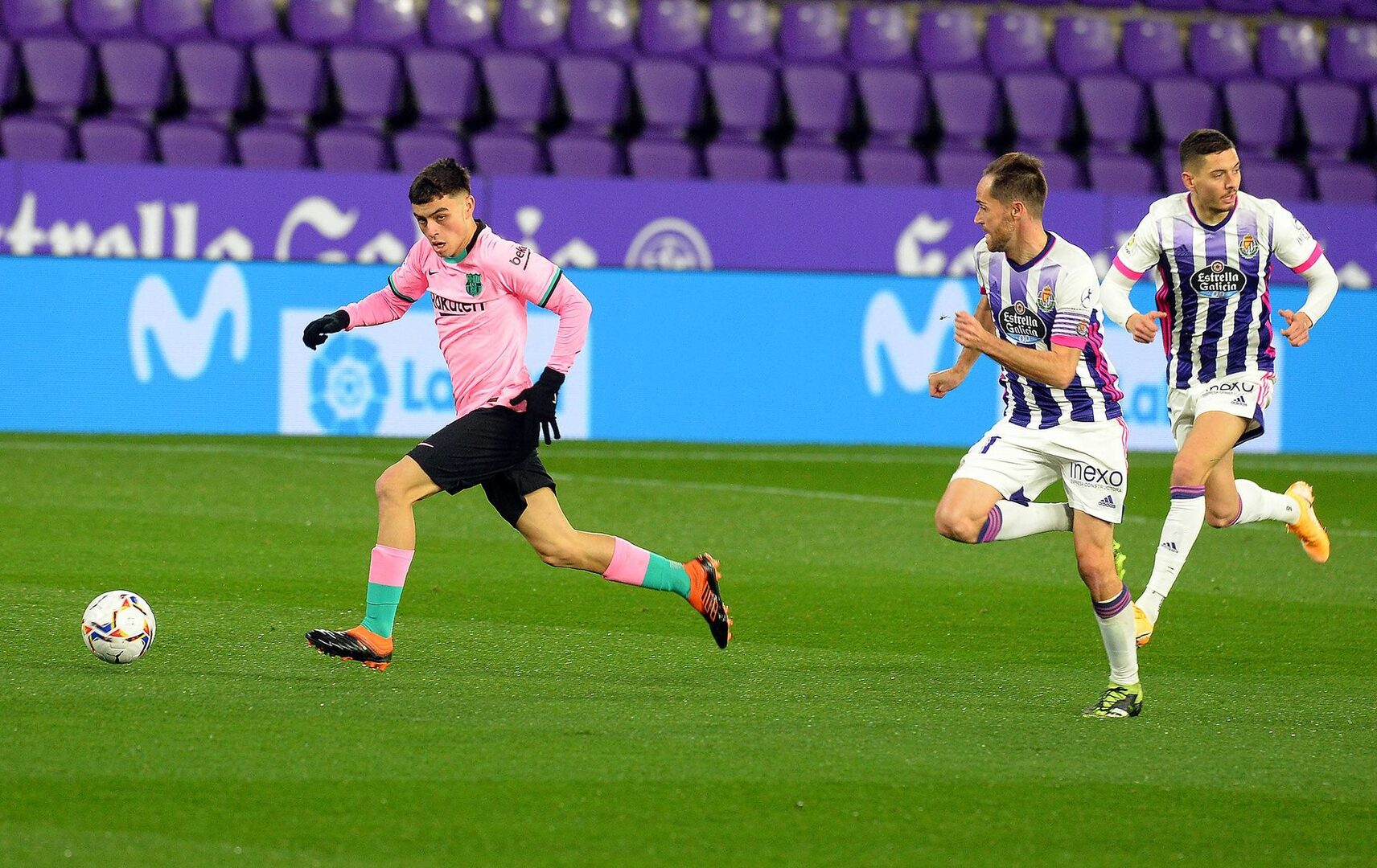 Lo consiguieron, con la suerte de marcar el segundo de la noche pasada la media hora. El Valladolid se quedó muy tocado. En esta ocasión fue Martin Braithwaite, que está demostrando con creces su valía para jugar en este Barça. El danés suma cinco dianas y parece un fijo en el once. No sólo aporta con sus goles. Este martes fue un buen socio para Messi y también para Pedri, el protagonista inesperado partido tras partido. El canario comienza a hacer rutina de la excepción. Antes de que reclamase los focos, el 0-2 de Braithwaite, que marcó en boca de gol a pase de Sergiño Dest, enrabietó al Valladolid, necesitado de puntos en la penúltima plaza. Los de Sergio González dieron un paso al frente, tuvieron ocasiones en un disparo de Alcaraz y un cabezazo de Javi Sánchez, pero sobre todo en un disparo de Orellana que obligó al lucimiento de Ter Stegen.