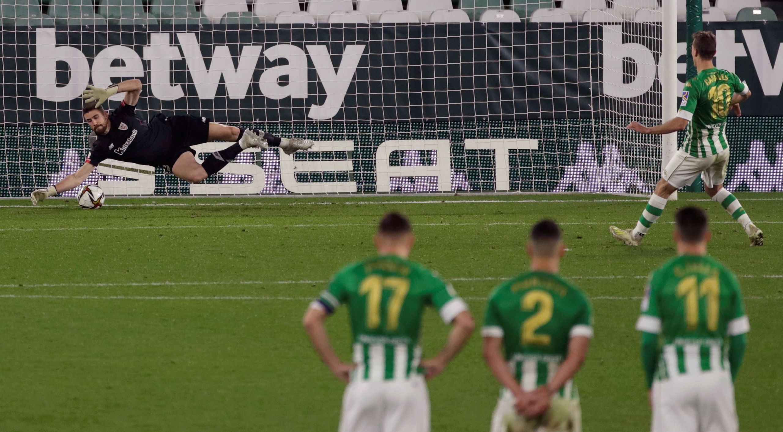 Betis, 0: Joel Robles; Emerson, Mandi, Víctor Ruiz, Miranda (Emerson, m.105); William Carvalho (Tello, m.105), Guido Rodríguez (Joaquín, m.91); Aitor Ruibal (Juanmi, m.74), Fekir (Sidnei, m.93), Canales; Borja Iglesias (Guardado, m.88).