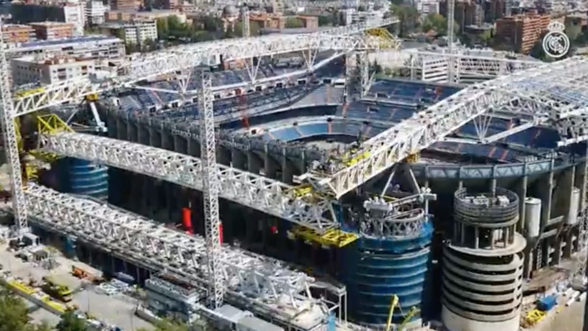 Las obras del nuevo Bernabéu van viento en popa. El Real Madrid ha compartido un vídeo en el que se muestra el proceso de izado de la gigantesca pieza desde diferentes puntos de vista.