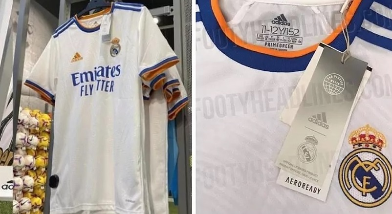En la primera equipación destacan los detalles azules y naranjas, recordando en parte a la de la temporada 13/14, en la que se ganó la Décima en Lisboa. La segunda camiseta, que aparece detrás de la primera, parece que será de color azul celeste.