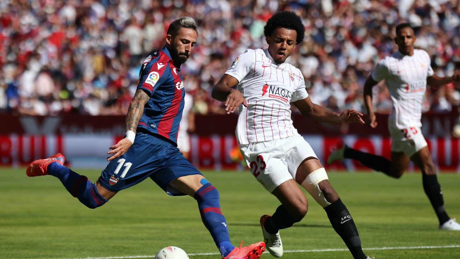 Los últimos minutos no iban a cambiar el reparto de puntos pero si abultaron el marcador. Koundé cabeceó en el primer palo un saque de esquina para poner el 1-3 y la puntilla al partido en el minuto 83. No se rindió el Levante y tiró de casta y pundonor. Soldado a punto estuvo de equilibrar el partido en apenas dos minutos. Primero redujo diferencias, tras culminar un contragolpe guiado por Morales, y poco después pudo empatar tras rebotar en él un saque del portero Bono que salió fuera igual que podía haber acabado dentro.