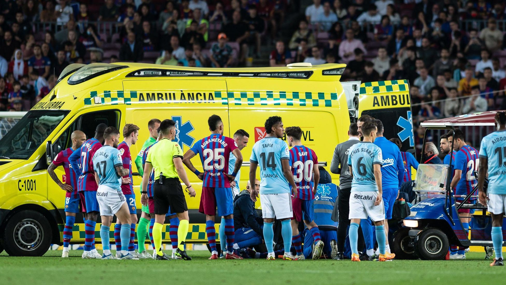El central del Barcelona, Ronald Araujo, fue evacuado en ambulancia del terreno de juego con destino al Hospital de Barcelona después de "sufrir una conmoción" en la segunda parte del encuentro ante el Celta de Vigo en el Camp Nou, según informó el club azulgrana en un comunicado médico.