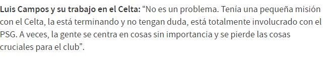 Los problemas extradeportivos -el caso de acoso sexual de Santi Mina y el enfrentamiento directo del presidente Mouriño con Denis Suárez- enturbiaron el ambiente. Tampoco ayudó el hecho que el PSG lanzara sus redes a por Campos, quien hoy por hoy parece más preocupado por la confección de plantilla del conjunto parisino y da la sensación de tener olvidado al equipo de Vigo- y la gota que está colmando la paciencia del Chacho Coudet es la desastrosa planificación deportiva.