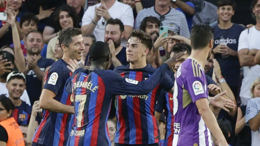 El Barcelona más coral, con la mejor versión de los extremos Raphinha y Ousmane Dembélé —con una y dos asistencias, respectivamente— y del polaco Robert Lewandowski, autor de dos goles, ha aplastado en el Camp Nou a un sobrepasado Real Valladolid (4-0).