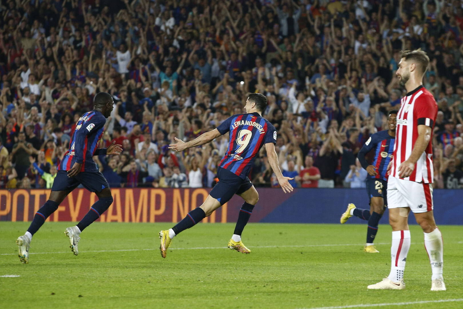 Si el siete del Barcelona anotó el primero, también se encargó de asistir en los otros tres. En el 2-0 (min. 18) sirvió a Sergi Roberto, que resolvió con un remate desde dentro del área que desvió Iñigo Martínez y en el 3-0 (min.22) le puso el balón en el punto de penalti a Lewandowski y el polaco hizo lo que más le gusta. El nueve del Barcelona recibió de espaldas y con un reverso batió a Unai Simón por el centro. En diez minutos el partido estaba finiquitado y delantero azulgrana anotó su duodécimo tanto en LaLiga.