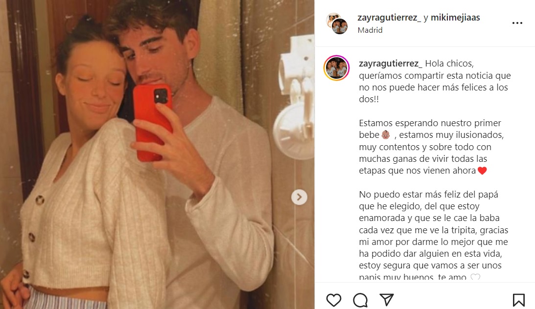 Ella y su pareja Miki Mejías llevan juntos dos años, la noticia la han anunciado en la cuenta de Instagram de Zayra, donde ha compartido varias imágenes.