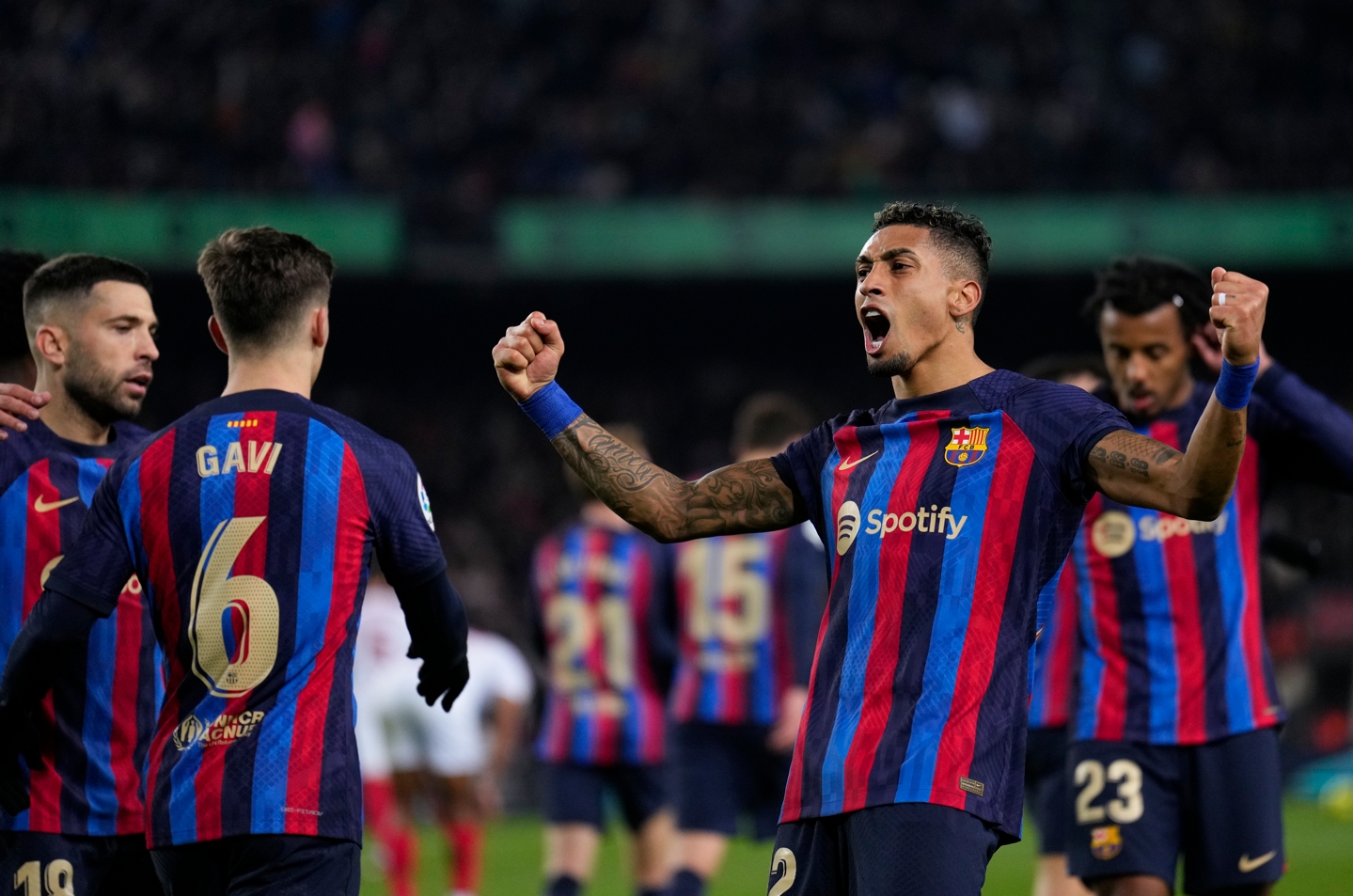 Goles: 1-0, m.58:Jordi Alba; 2-0, m.70: Gavi; 3-0, m.78: Raphinha