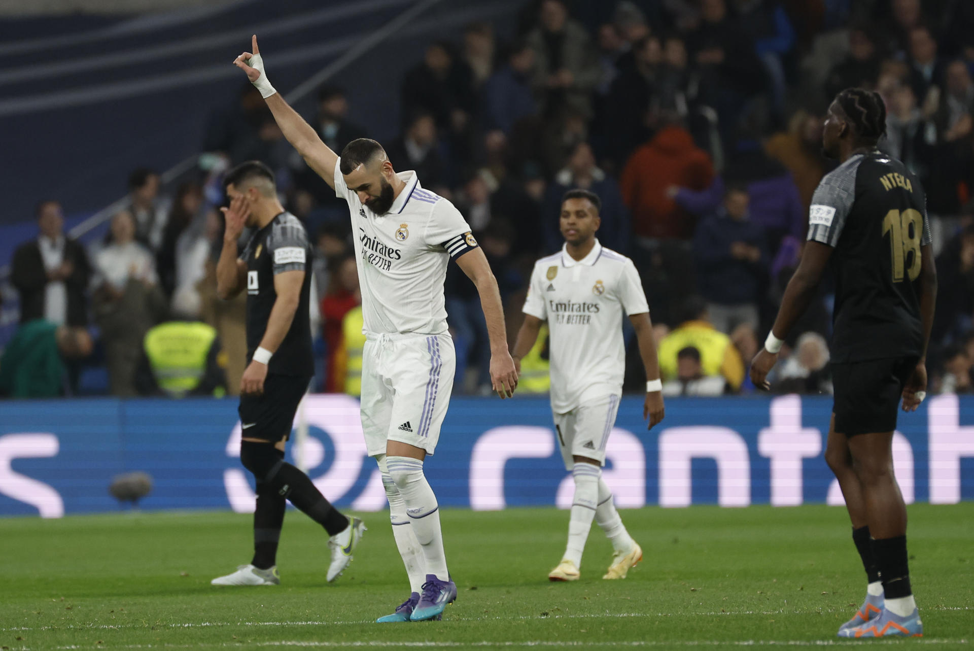 El que no estuvo en Mallorca y volvía a la titularidad en Liga era Karim Benzema. El capitán madridista provocó el primero de los dos penaltis de la noche. Un cabezazo del delantero golpeó en la mano de Enzo Roco. Penalti claro y definición inapelable del francés. No tardó el pichichi de la temporada pasada en hacer el segundo de su cuenta particular. Rodrygo provocó otro penalti con un buen recorte dentro del área. Décimo penalti de la temporada para el Madrid, que ya es el equipo con más penas máximas a favor de las cinco grandes ligas. Benzema cambió de lado, pero el resultado fue el mismo: 3-0 justo antes del descanso y partido sentenciado.