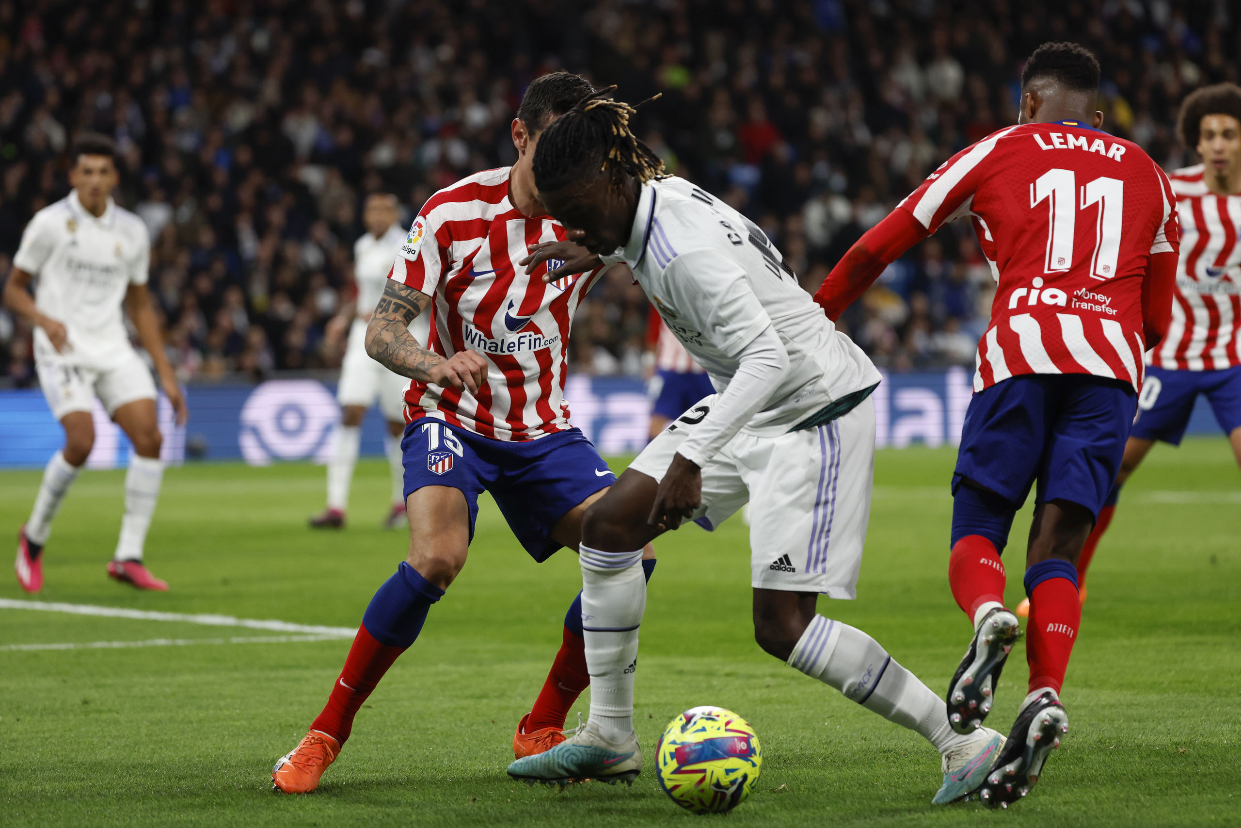 Simeone tenía claro que no podía permitir dejar correr al Madrid. La única vez que lo consiguió hacer el equipo de Ancelotti, Vinícius rompió por el carril central, cedió para Asensio, pero el balear, horrible su partido, no precisó su disparo. El Atlético se parapetó, como si el empate fuese bueno en su lucha. Más aún cuando perdió a Reinildo por un gesto feo de rodilla que dejó debilitado su lateral izquierdo. Sin Reguilón. Con Mario Hermoso como primera opción.