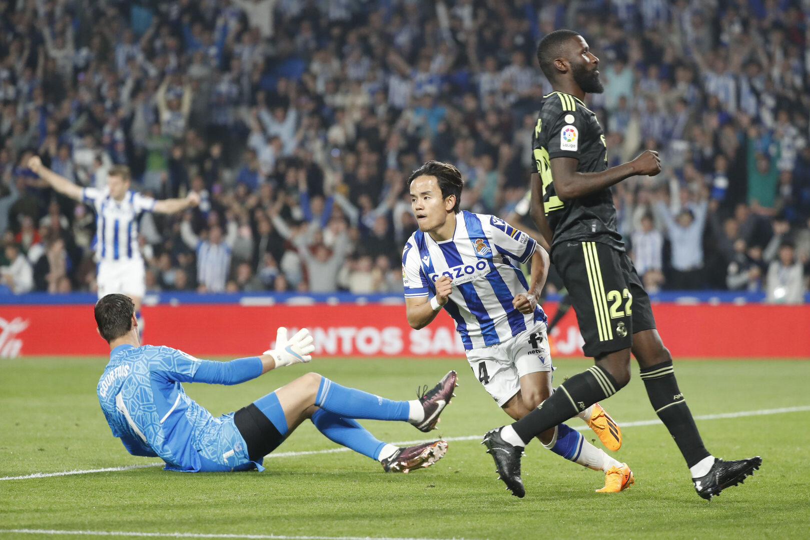 El primer gol de la noche llegó nada más comenzar la segunda parte, después de que Sorloth apretara y exigiera en la salida a un Militao que se resbaló y cedió sin precisión a Courtois. El belga no llegó a tiempo y el exmadridista Take Kubo abrió la lata para los locales sin oposición. El tanto pilló desprevenidos a los blancos, que sólo se desperezaron tras el descanso con una acción aislada de Rodrygo.