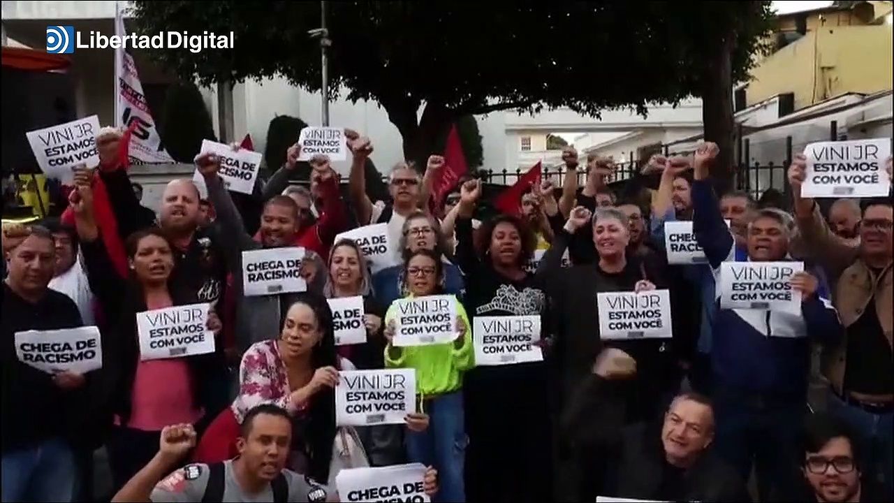 Están en En Sao Paulo, Brasil, pero protestan contra el racismo en España. Es su forma de mostrar su apoyo a Vinicius Jr., el delantero estrella del Real Madrid, que lleva sufriendo el acoso racista durante toda esta temporada. "Queremos decir que Vini no está solo", señala el portavoz del movimiento Unegro. Se han concentrado ante el consulado español para expresar su apoyo a Vinicius, al que consideran un valiente por la cruzada que ha abierto contra el racismo.