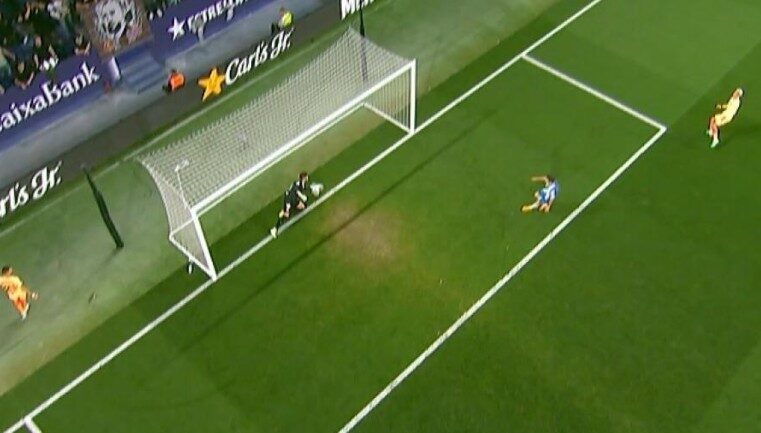 En el minuto 45, justo antes de acabar la primera parte, el Atlético de Madrid dispuso de una triple ocasión que Pacheco frustró. En el último de esos tres disparos de los colchoneros, a cargo de Antoine Griezmann, el guardameta local sacó el balón de forma muy justa sobre la línea, aunque el VAR determinó que el balón había rebasado completamente la línea de gol, pese al desesperado intento de Pacheco por despejarlo, y que por tanto el 0-2 debía subir al marcador.