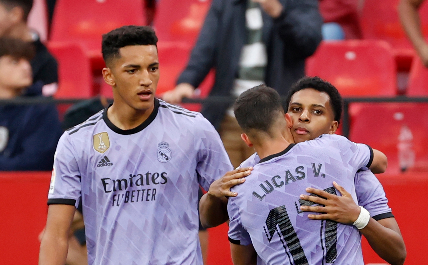 Lo dicho, que Rodrygo no entiende de trámites y, ante la ausencia de Vinícius y Benzema, se encargó de liderar al Madrid en el Sánchez Pizjuán para remontar la contienda (1-2) ante un Sevilla que se adelantó muy pronto en el marcador con el tanto de Rafa Mir. Pero apareció el 21 blanco para marcar un gol en cada parte —el primero de falta y el segundo con una genialidad, con doble regate ante Gonzalo Montiel incluido— y acabar dando los tres puntos al conjunto de Carlo Ancelotti en un partido que se calentó de lo lindo en su recta final a raíz de la expulsión de Acuña tras una durísima entrada, con los tacos por delante, sobre Dani Ceballos.