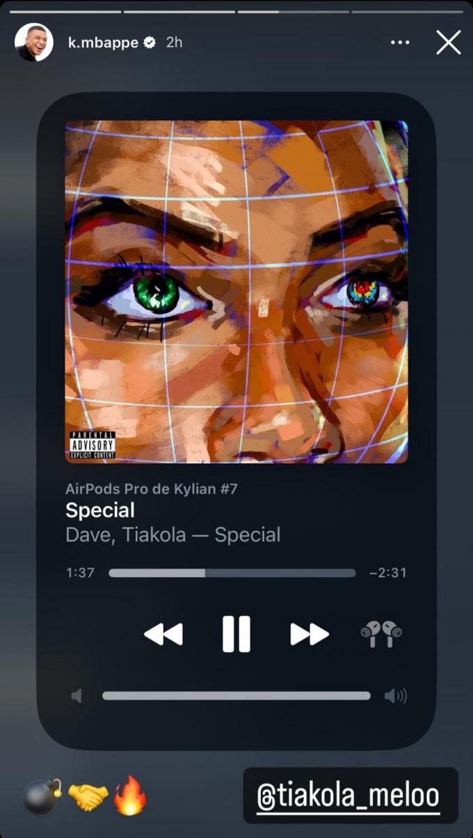 Esta información coincide con un nuevo mensaje del futbolista francés en su perfil de Instagram. A través de una storie, Kylian ha compartido una canción del cantante Dave, junto a la colaboración de Tiakola, titulada 'Special'.