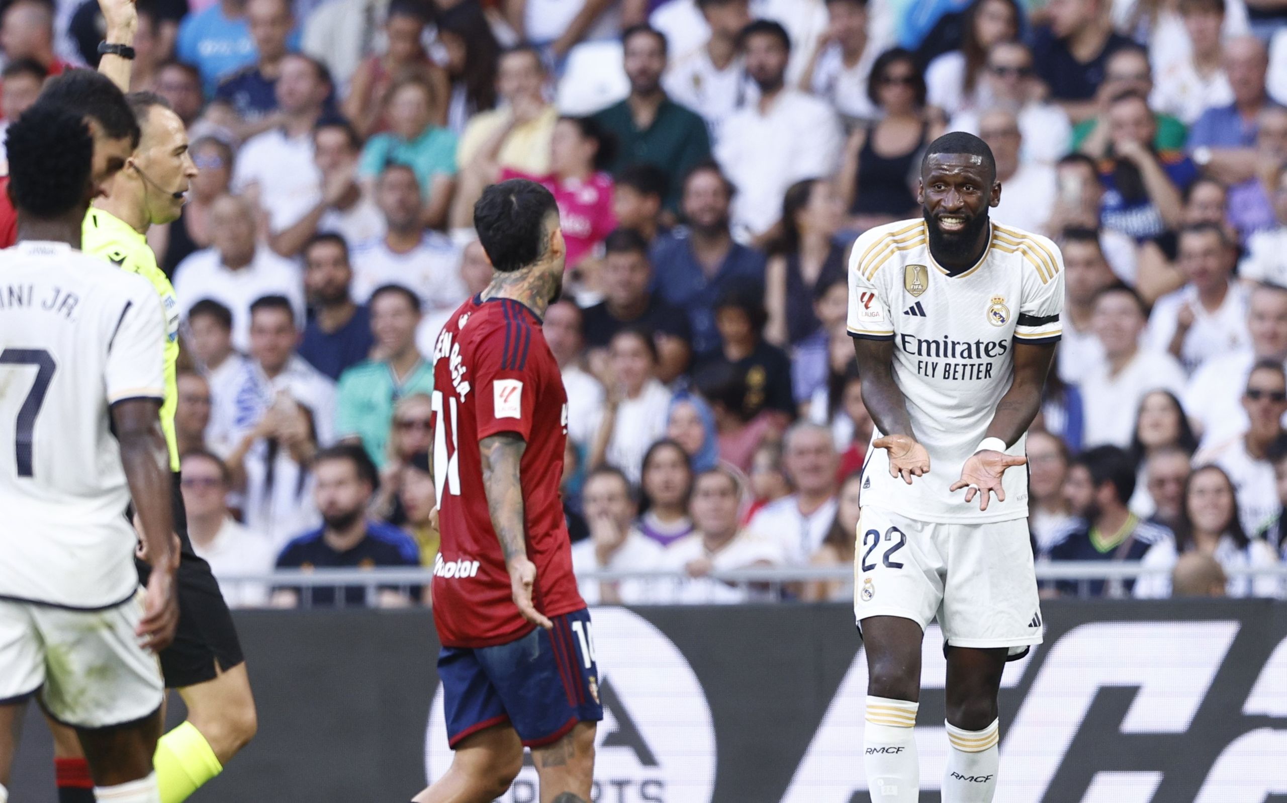 Más problemas para Carlo Ancelotti en defensa. Antonio Rüdiger se ha convertido en una nueva preocupación en la mermada zaga del Real Madrid : el alemán vio su cuarta tarjeta amarilla este sábado, en la victoria blanca ante Osasuna en el Santiago Bernabéu , y ve peligrar el Clásico del 28 de octubre ante el FC Barcelona. en el Estadio Olímpico Lluís Companys porque se perdería el partido de la Ciudad Condal si es amonestado el sábado 21 ante el Sevilla en el Sánchez Pizjuán.