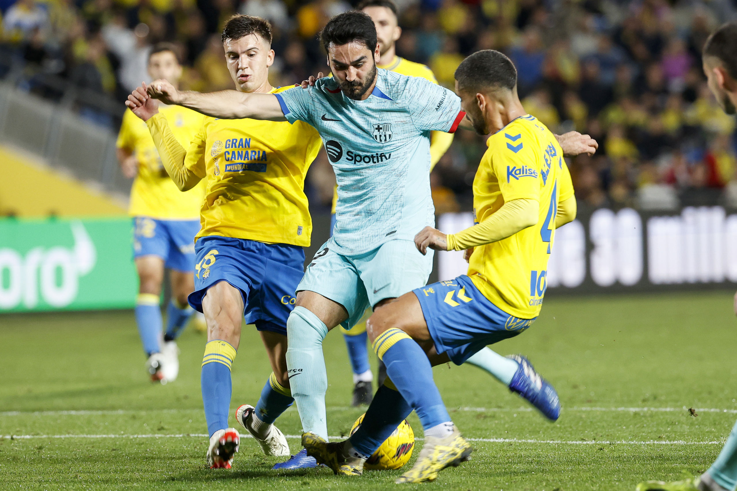 Ferran hizo el 1-1 pero las ocasiones visitantes tampoco se multiplicaron. Las Palmas retomó el dominio de balón en el tramo final, donde entraron Joao Félix e hizo su debut Vitor Roque, pero tras el rechace de un disparo del portugués, Sinkgraven cometió penalti sobre Gündogan. El alemán convirtió el 1-2 que mantiene el pulso azulgrana y deja en mitad de tabla a los canarios.