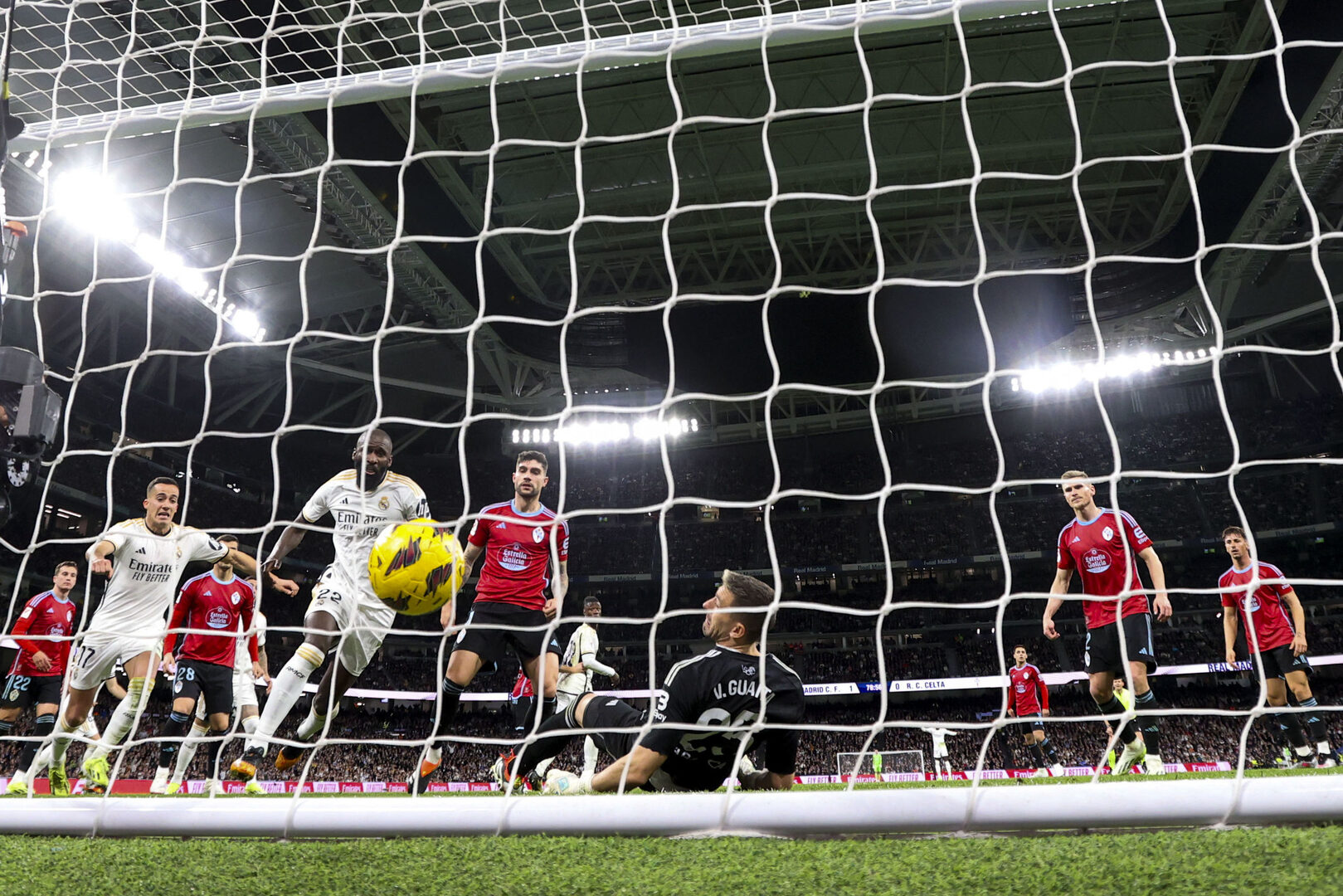 No hubo nerviosismo madridista por la falta de colmillo del Celta. Manu Sánchez disparó cruzado en un acercamiento, Bamba arriba en el segundo. Y Aspas, en una acción con mal despeje de un Nacho desconocido, fue el primero que probó a Lunin. El portero suspiró profundamente en la última acción del primer acto cuando Luca de la Torre, solo, en el segundo palo, cabeceó arriba con todo para marcar.