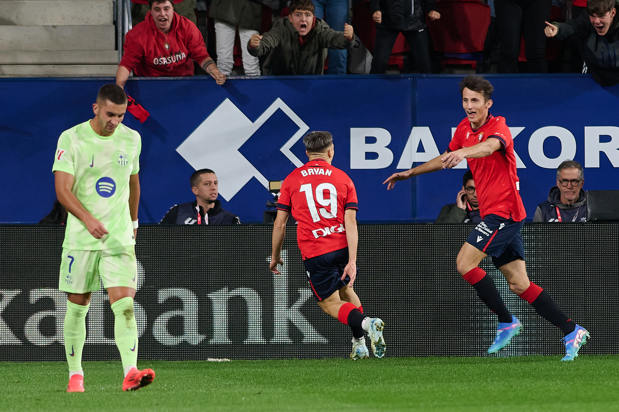 Primera parte espectacular de los rojillos, que llegaron al intermedio con una ventaja de dos goles, los que llevaron la firma de Ante Budimir y Bryan Zaragoza, que primero asistió y luego marcó. Pau Víctor acortó distancias al comienzo de la segunda parte, pero Osasuna volvió a poner tierra de por medio con Budimir —doblete del croata, esta vez transformando un penalti— y el golazo de Bretones. Lamine Yamal respondió enseguida con otro gran gol, en el 89’, pero el 4-2 ya no se movería del marcador y, aunque Ferran Torres estrelló un balón en el palo, Osasuna acabaría logrando una merecida victoria que le sitúa momentáneamente en puestos europeos.