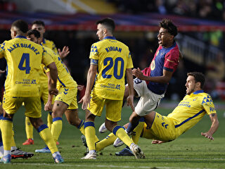 Tras el descanso, el ritmo fue menor, con los equipos más concentrados en defender y no dar facilidades a los ataques rivales. El encuentro volvió a desequilibrarse rápidamente, desde los once metros obra de Raphinha, que volvía a marcar en Liga. Gil Manzano señaló penalti sobre Lamine Yamal, derribado por Mojica en el área cuando encaraba a Leo Román.