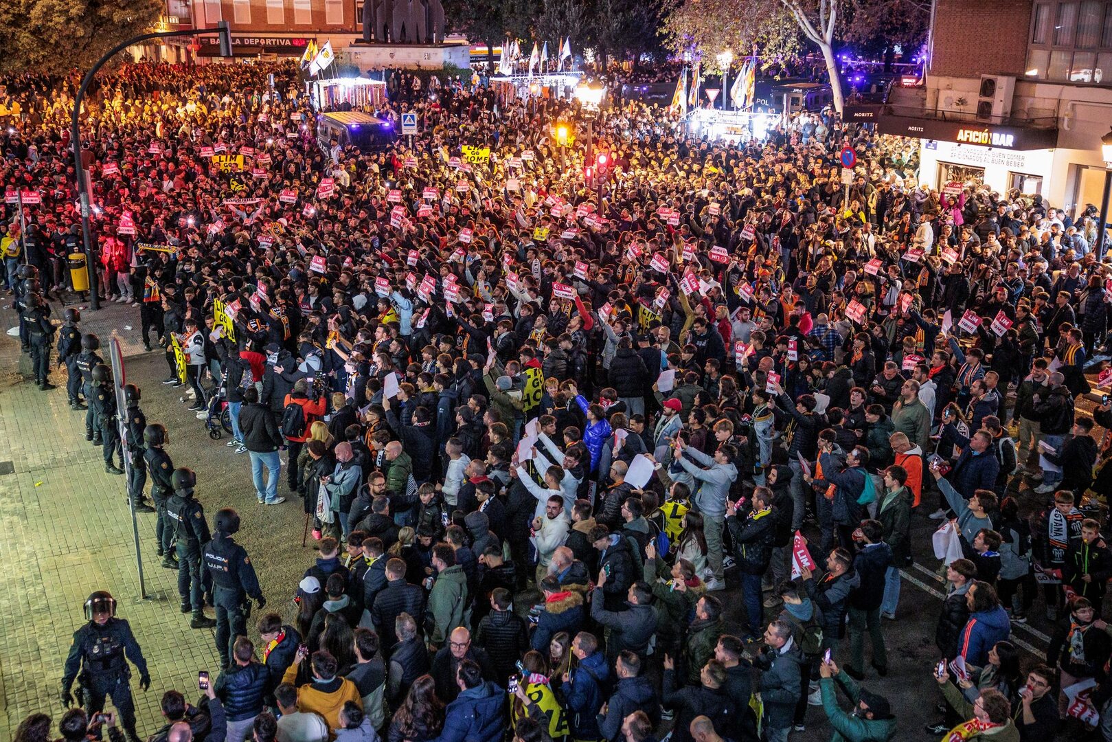 La Policía Nacional ha detenido a dos hombres y una mujer por agredir a varios agentes este viernes tras la finalización del partido de fútbol entre el Valencia CF y el Real Madrid en el estadio de Mestalla (1-2).