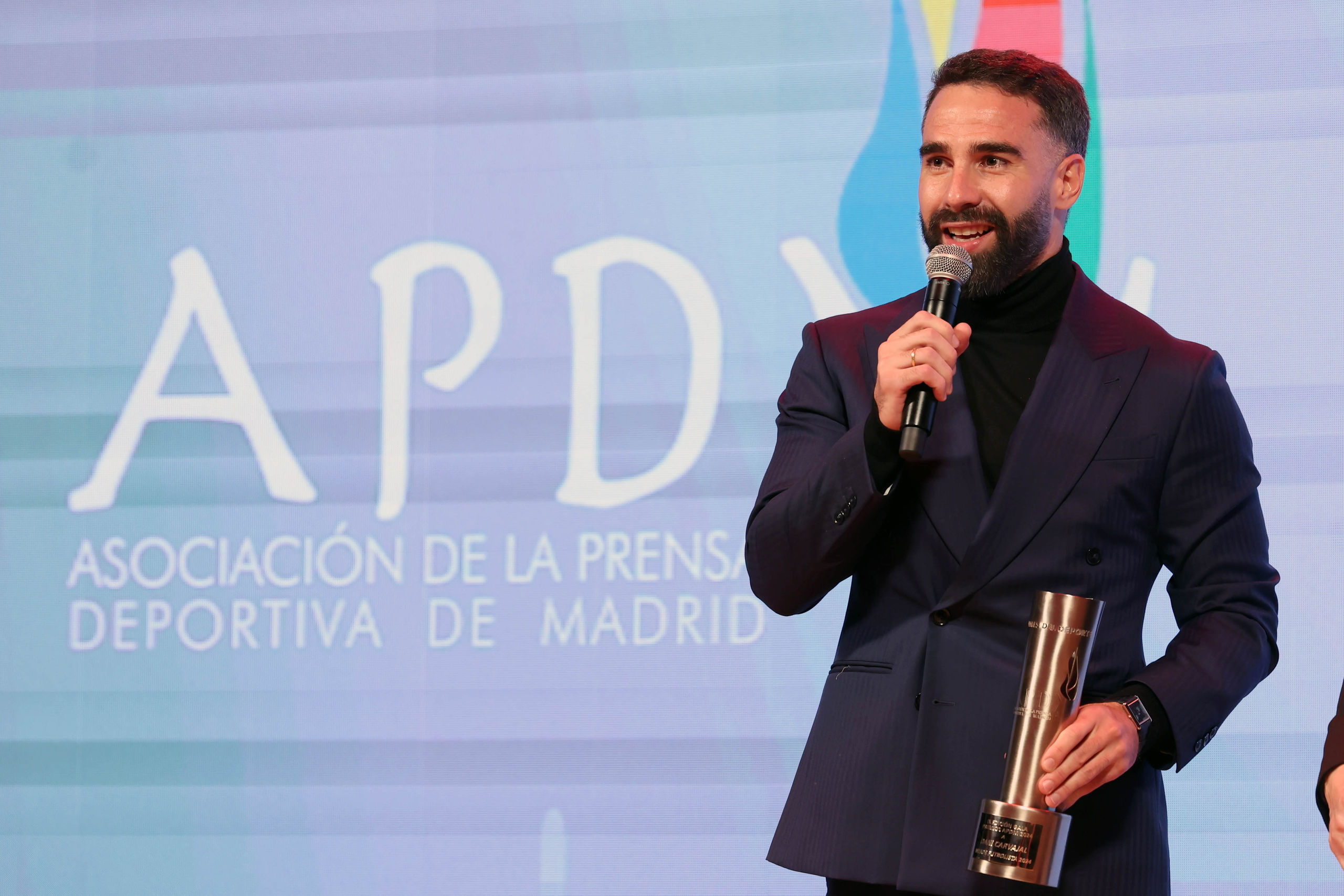 Durante el evento, Carvajal recibió un galardón por los seis títulos logrados en 2024 tanto con el Real Madrid (5) como con la selección española (1).