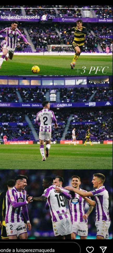 Un Luis Pérez que que, la temporada pasada, estando en Segunda División, se río de su propia afición publicando en sus redes sociales mensajes en los que afirmaba sin tapujos con su mítico 3PFC -3 puntos fuera de casa- el hecho de sentir que juega como visitante a pesar de hacerlo en el José Zorrilla arropado por más de 18.000 socios, haciendo gestos despectivos a su propio público o mostrando una actitud amenazante.