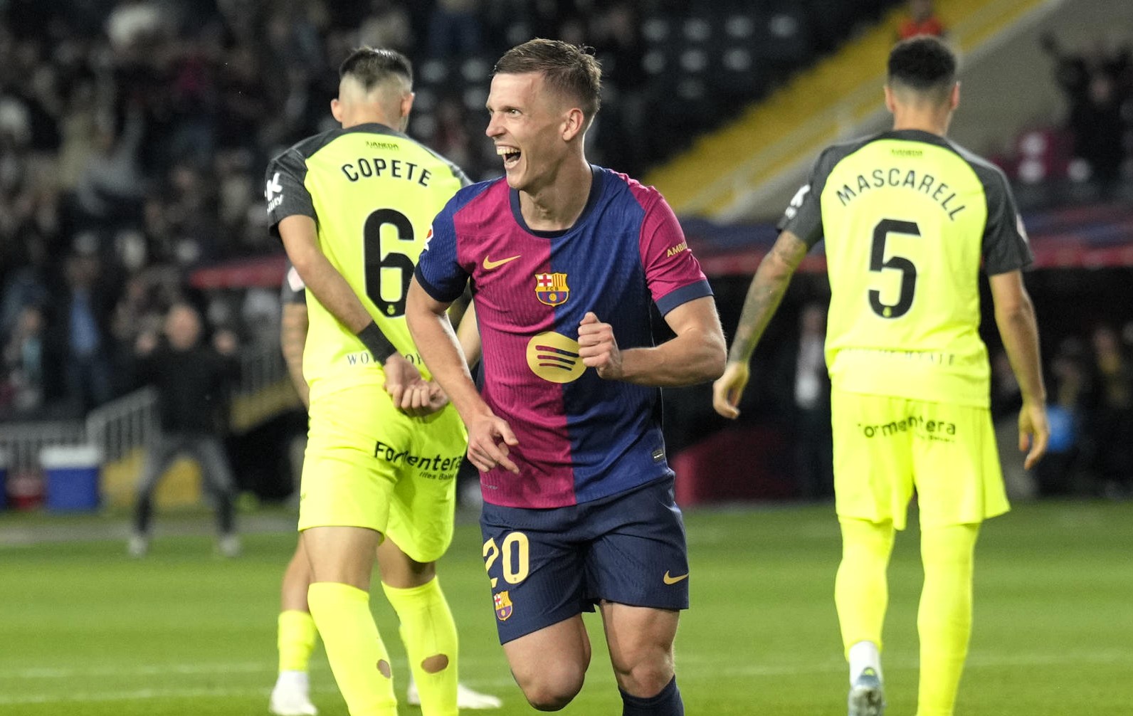Los de Jagoba Arrasate ofrecieron la réplica superado el primer cuarto de hora, en una ocasión clara de Samu Costa en la que apareció Szczesny para desbaratar el peligro, pero el dominio, desde ese momento, fue exclusivamente azulgrana. Román volvió a aparecer para sacar un remate de Dani Olmo con una mano providencial en pleno asedio culé. Dos minutos más tarde, Gavi estrelló un balón en el larguero, después de que este tocase levemente en Omar Mascarell, y casi sin tiempo para asimilarlo Ronald Araujo falló un gol cantado, con un disparo rozando el palo, después de cazar un rechace tras un chut de Lamine Yamal.