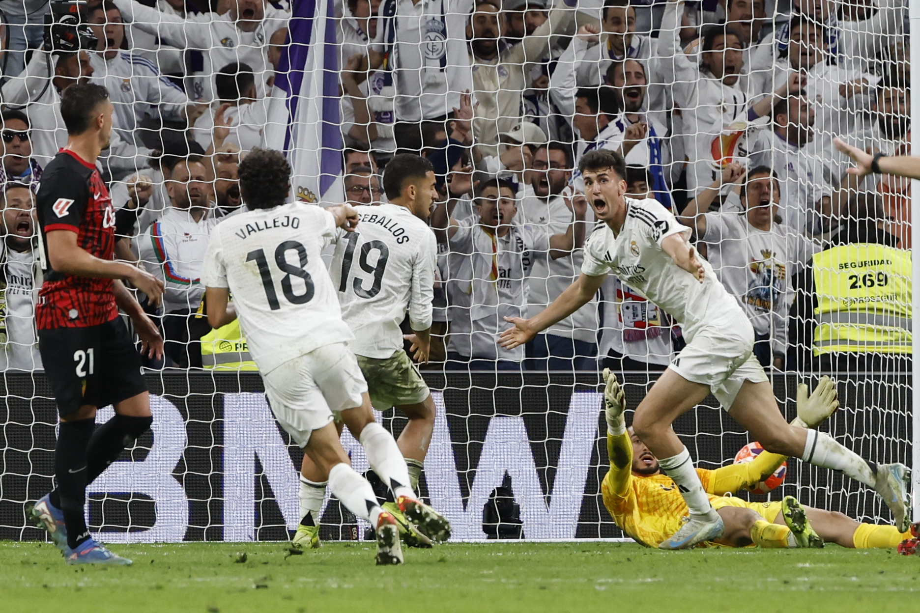 Real Madrid, 2: Courtois; Fede Valverde, Asencio (Jesús Vallejo, m.64), Jacobo Ramón, Fran García; Modric, Ceballos, Arda Güler, Bellingham; Endrick (Gonzalo García, m.74) y Mbappé