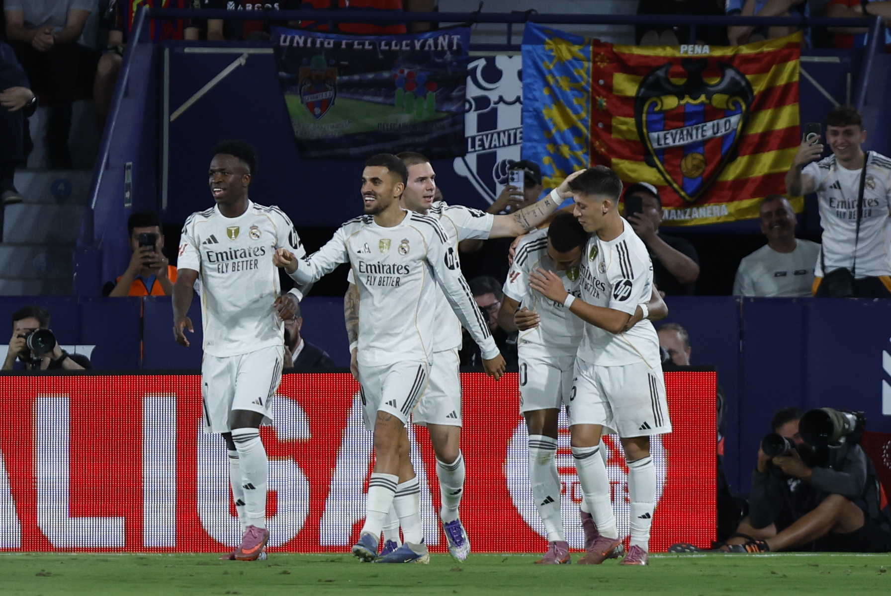 Misión cumplida para este Real Madrid de Xabi Alonso, que ha vuelto a ganar para mantener el pleno en LaLiga después de seis jornadas. Los blancos han firmado un triunfo muy convincente contra el Levante (1-4) en el Ciudad de Valencia, escenario del choque previo al derbi del próximo sábado contra el Atlético de Madrid en el Metropolitano, al imponerse a un Levante que empezó respondón pero que terminó hincando la rodilla, asfixiado por la pegada de un líder que lo gana todo.