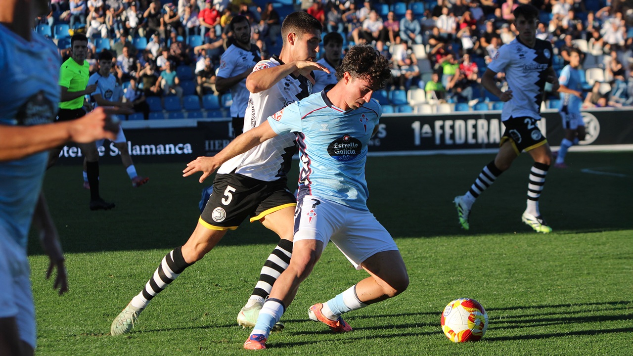 Unionistas de Salamanca recibía en su estadio, el Reina Sofía, al Celta Fortuna. El partido estuvo marcado por una rigurosa expulsión de Iago Barreiros, canterano del Celta, en el minuto 35 de la primera parte. A pesar de la inferioridad, los de Fredi Álvarez impusieron su mayor talento y asaltaron el feudo charro con dos goles de Hugo González, uno de ellos de penalti, para terminar ganando a pesar de jugar más de una hora con un jugador menos por 0-2.