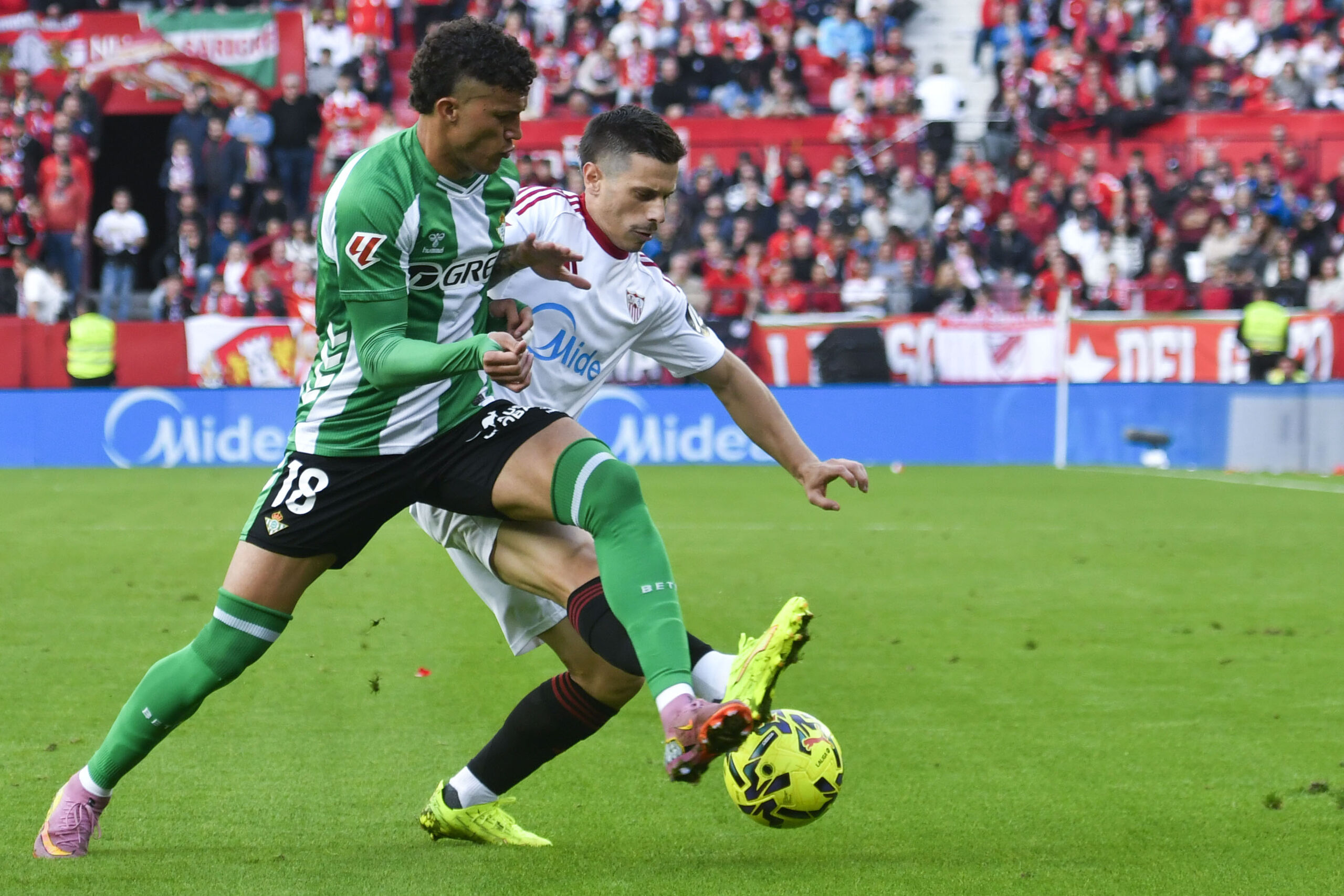 El derbi sevillano que el Sevilla y el Real Betis disputan en el estadio Ramón Sánchez Pizjuán, correspondiente a la decimocuarta jornada de LaLiga EA Sports, tuvo que ser interrumpido en la recta final del choque tras el lanzamiento de botellas al terreno de juego.
