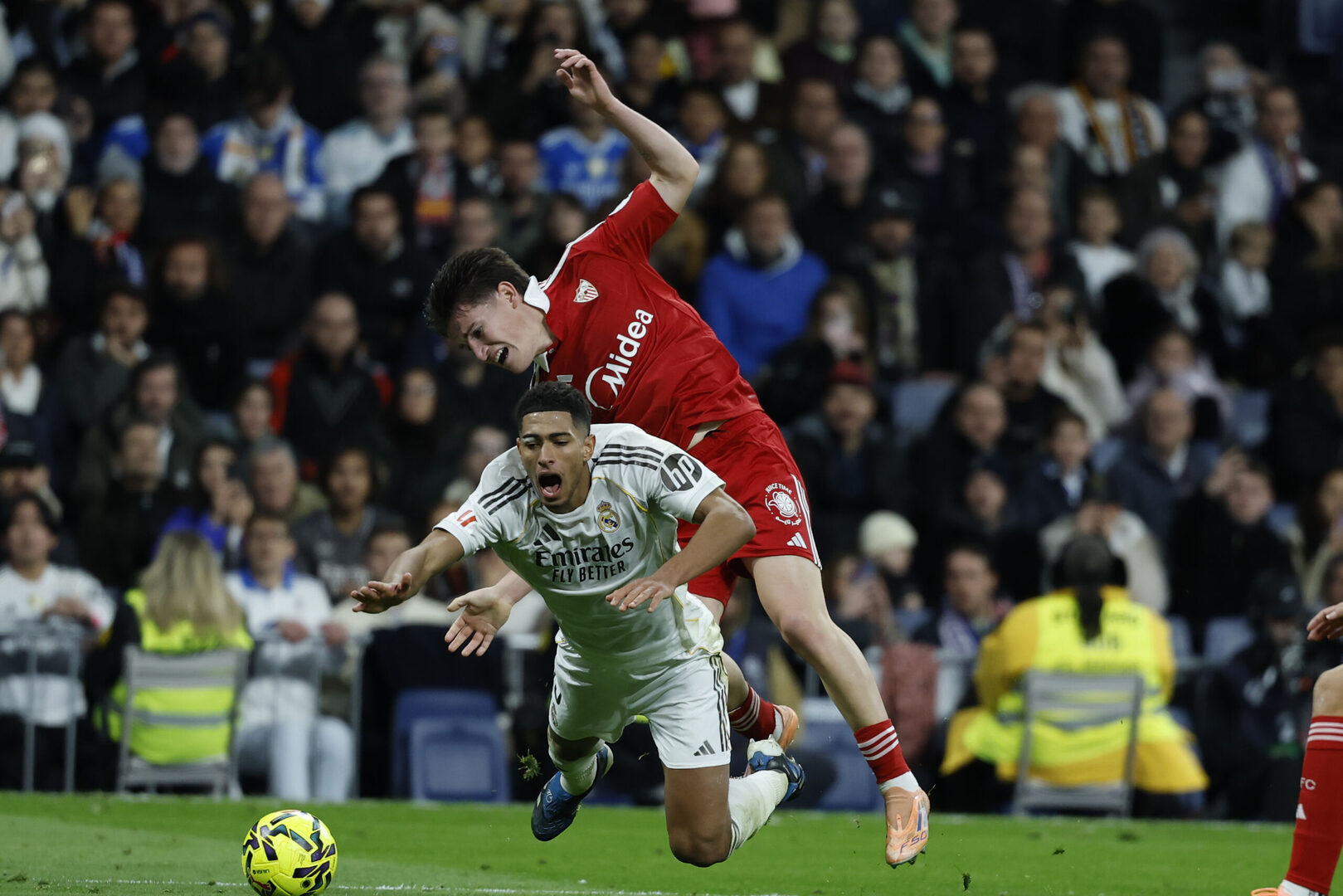 Hizo un partidazo el Sevilla ante el Real Madrid. El equipo de Matías Almeyda fue mejor con y sin balón que un conjunto merengue que sobrevivió a base de chispazos (gol a balón parado de Bellingham de cabeza y de penalti de Kylian Mbappé). Su falta de pegada y un enorme Thibaut Courtois le hizo irse de vacío del Bernabéu. Los hispalenses terminaron el encuentro frustrados y muy cabreados con el arbitraje del trencilla gallego Alejandro Muñiz.