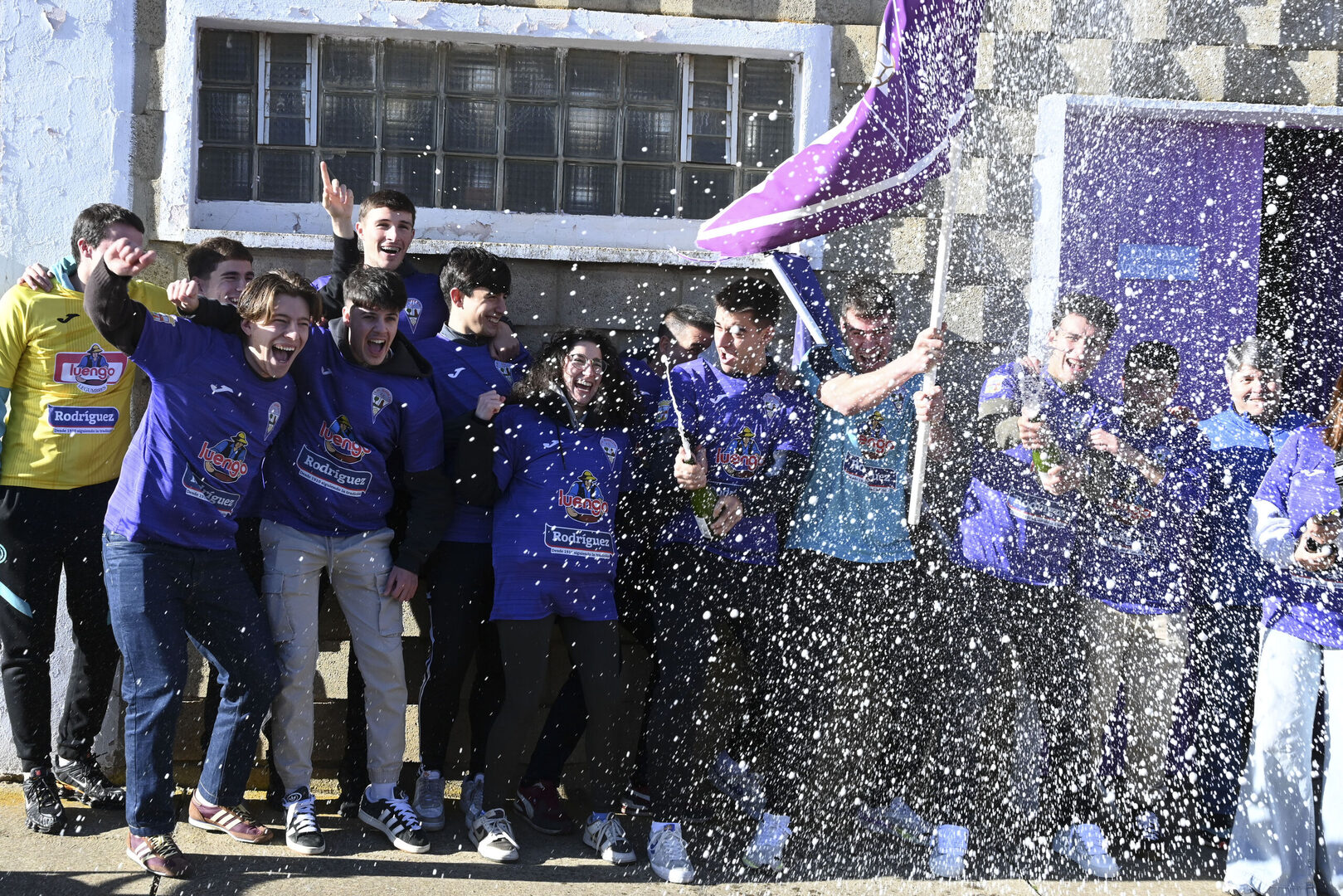 Otras cuatro jóvenes a las puertas de las administración gritaban mientras brindaban "más La Bañeza Fútbol Club y menos Cultural", en referencia a la rivalidad con el equipo de la capital leonesa que milita en la Segunda División.