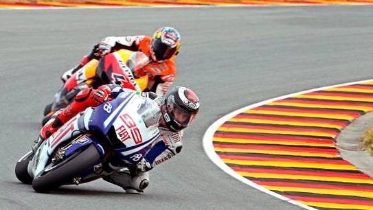 Apenas un giro después volvió a rebajar su tiempo, ya con Rossi en pista, que se reveló incapaz de acercarse a su compañero de escudería, quien mantuvo a raya incluso a un competitivo Stoner. El australiano, campeón del mundo de 2007 en MotoGP, doblegó a Dani Pedrosa en su último giro para encaramarse a la segunda posición, sin acercarse a Lorenzo, con Pedrosa en la tercera plaza.