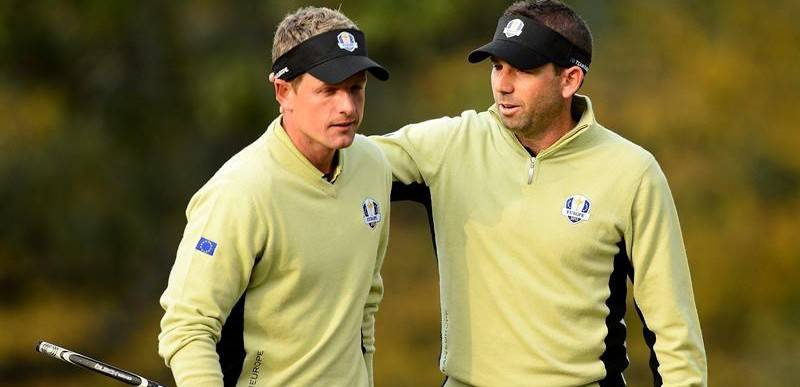 El español Sergio García junto al inglés Luke Donald, una de las parejas imbatidas en esta modalidad de golpear la bola de manera alternativa, cayeron antes de lo esperado, en el hoyo 15, frente a la pareja formada por Keegan Bradley y el zurdo Phil Mickelson.