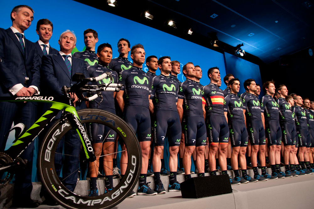Parte del equipo Movistar Team durante la presentación oficial.
