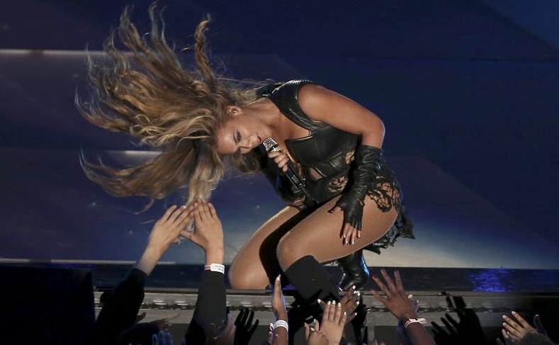 La artista cantó como si tuviera algo que demostrar, con mucha fuerza y sin dejar de bailar sobre un escenario con fuegos artificiales y luces con la forma de su rostro y su larga melena. Llevaba un conjunto de cuero negro de Rubin Singer, con guantes a juego y botines de tacón, y acompañada de más de 100 bailarines repasó algunos de sus éxitos como Love on Top, Crazy in Love, Baby Boy y Till the End of Time.