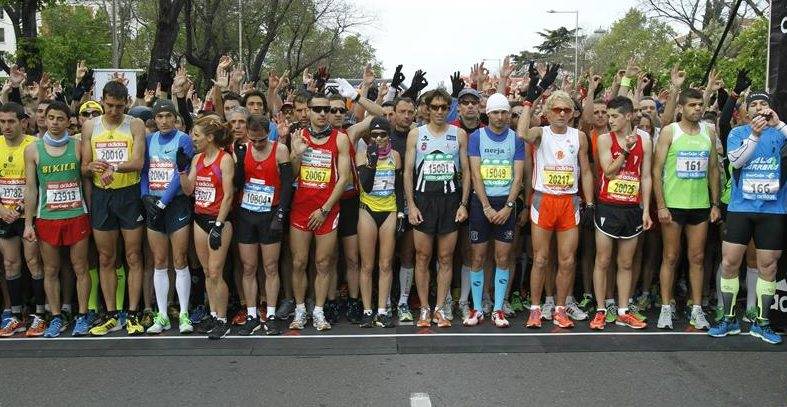 Con cuatro grados de temperatura y una sensación térmica todavía más fría, 26.000 corredores partieron de la plaza de Colón. La mitad, con el objetivo de acabar los 42.195 metros; el resto, después de recorrer con todos los tres primeros kilómetros, para cubrir el recorrido de sus respectivas carreras, los 10.000 metros o el medio maratón. Antes de la salida, un miembro de la Brigada Paracaidista madrileña descendió sobre la plaza de Colón portando la bandera de la candidatura olímpica.