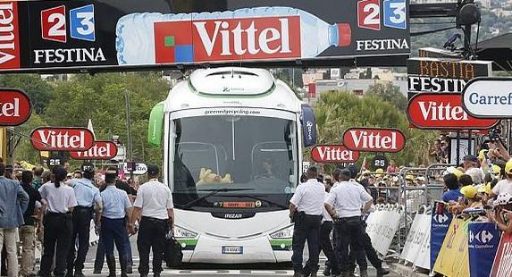 Un incidente que fue provocado cuando el autobús del equipo Orica, conducido por el español Garikoitz Atxa, trató de cruzar la meta de Bastia en el momento en el que al pelotón le restaba una quincena de kilómetros para el final. El vehículo pegó con el techo en la parte alta de la línea de meta y quedó bloqueado durante varios minutos, lo que hizo temer a los organizadores que la etapa no pudiera acabar en el lugar previsto.