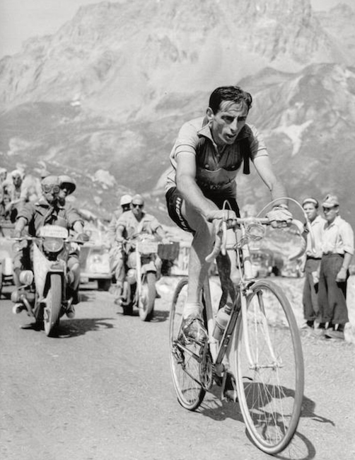 "Como si ignorase la existencia de cualquier otro corredor, Fausto, sin girarse en ningún momento, acelera. Después, sintiendo la resistencia desesperada, acelera aún más. Es evidente que la ruptura está hecha. A seis kilómetros de la cima… Coppi alza el vuelo". Así narraba Jaques Goddet la primera ascensión al Alpe D’Huez en 1952, con Fausto Coppi como gran protagonista. No podía ser otro: el Campionissimo, que además lograría ese año su segundo título en la Grande Boucle tras el de 1949. La II Guerra Mundial había truncado la carrera del piamontés, de humilde cuna, pero volvió con energías renovadas a finales de los 40 para ganarlo (casi) todo y marcar un hito en la historia del ciclismo.