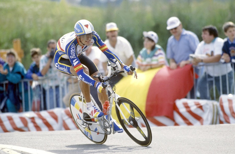 13 de julio. La novena etapa del Tour'92 acabaría pasando a la historia por albergar la mejor contrarreloj jamás vivida, con Luxemburgo como testigo de la hazaña de Induráin. El navarro voló sobre el asfalto, sacando tres minutos al segundo en la etapa, Armand De Las Cuevas, y dejando a la mayoría de los favoritos en la general a más de cuatro minutos, salvo a Gianni Bugno (tres y medio). Sencillamente espectacular, y brutal, fue lo que hizo con Laurent Fignon, al que dobló sin piedad. Pascal Lino logró mantener el maillot amarillo, pero sólo con 1:27 de ventaja sobre el de Villava. "No se puede ganar a un extraterrestre", dijo Bugno del navarro. Aquel día nació la leyenda del "extraterrestre Induráin".
