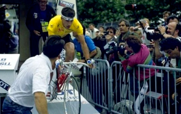 1 de julio. La etapa prólogo del Tour, una contrarreloj de apenas 7,8 kilómetros en Luxemburgo, estuvo marcada no sólo por el triunfo de Erik Breukink, sino, sobre todo, por el despiste monumental de Perico Delgado, que iniciaba la carrera con el maillot amarillo como ganador el año anterior. José Miguel Echávarri, el director del Reynolds-Banesto, quiso tenerlo todo controlado, pero el segoviano sacó a relucir su fama de despistado y salió con 2:40 minutos de retraso. El Tour perdido desde el primer día. Su desventaja se vería incrementada sólo dos días después, tras realizar una contrarreloj por equipos desastrosa en la que el Reynolds finalizó último a más de cuatro minutos y medio del Super U de Fignon. Aún así, Perico firmó en los días posteriores actuaciones memorables, siendo tercero en Cauterets, segundo en Superbagnères y segundo en Alpe D'Huez, para acabar tercero en la general, a 3:34 de LeMond. Lo dicho: si no hubiera sido por lo de aquellos primeros días...