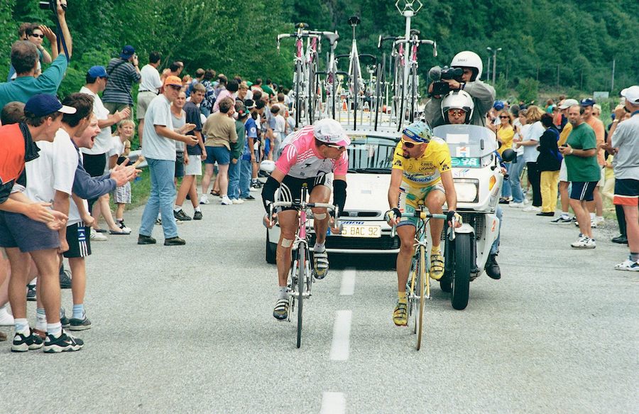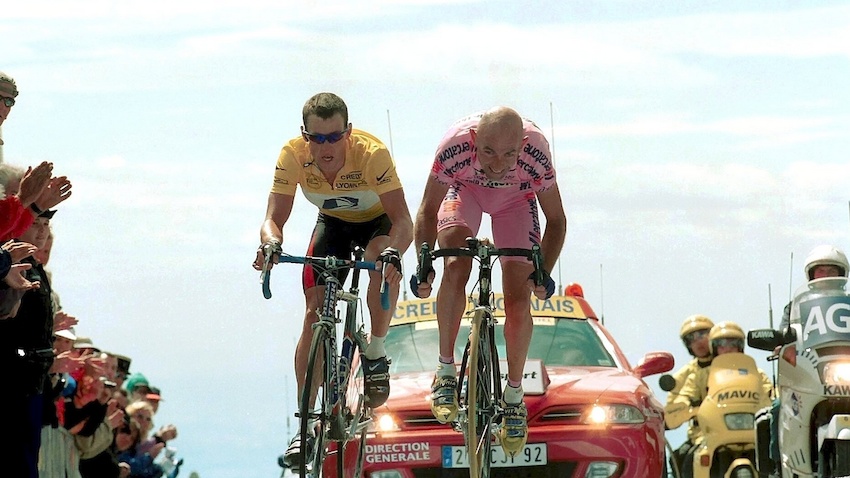 13 de julio de 2000. Undécima etapa entre Carpentras y Mont Ventoux. Aquel año, Marco Pantani afrontaba la carrera sin posibilidades de victoria, pero dejó destellos de su calidad en la montaña. Ese día vivió un mano a mano antológico con Armstrong en el monte calvo. El texano cedió la victoria parcial al Pirata, pero éste no le agradeció el gesto. Fue ahí cuando se originaron las malas relaciones entre ambos, agravadas al referirse Armstrong al italiano como el Elefantino, un sobrenombre que éste odiaba. Sería la del Mont Ventoux en 2000 la penúltima victoria de Pantani, ganando, esta vez en solitario, otra etapa de montaña en ese mismo Tour –en la decimocuarta etapa, con final en Courchevel–. Y es que, a partir de entonces, el Pirata sólo se subió a la bicicleta en contadas ocasiones antes de fallecer por una sobredosis de cocaína en febrero de 2004.