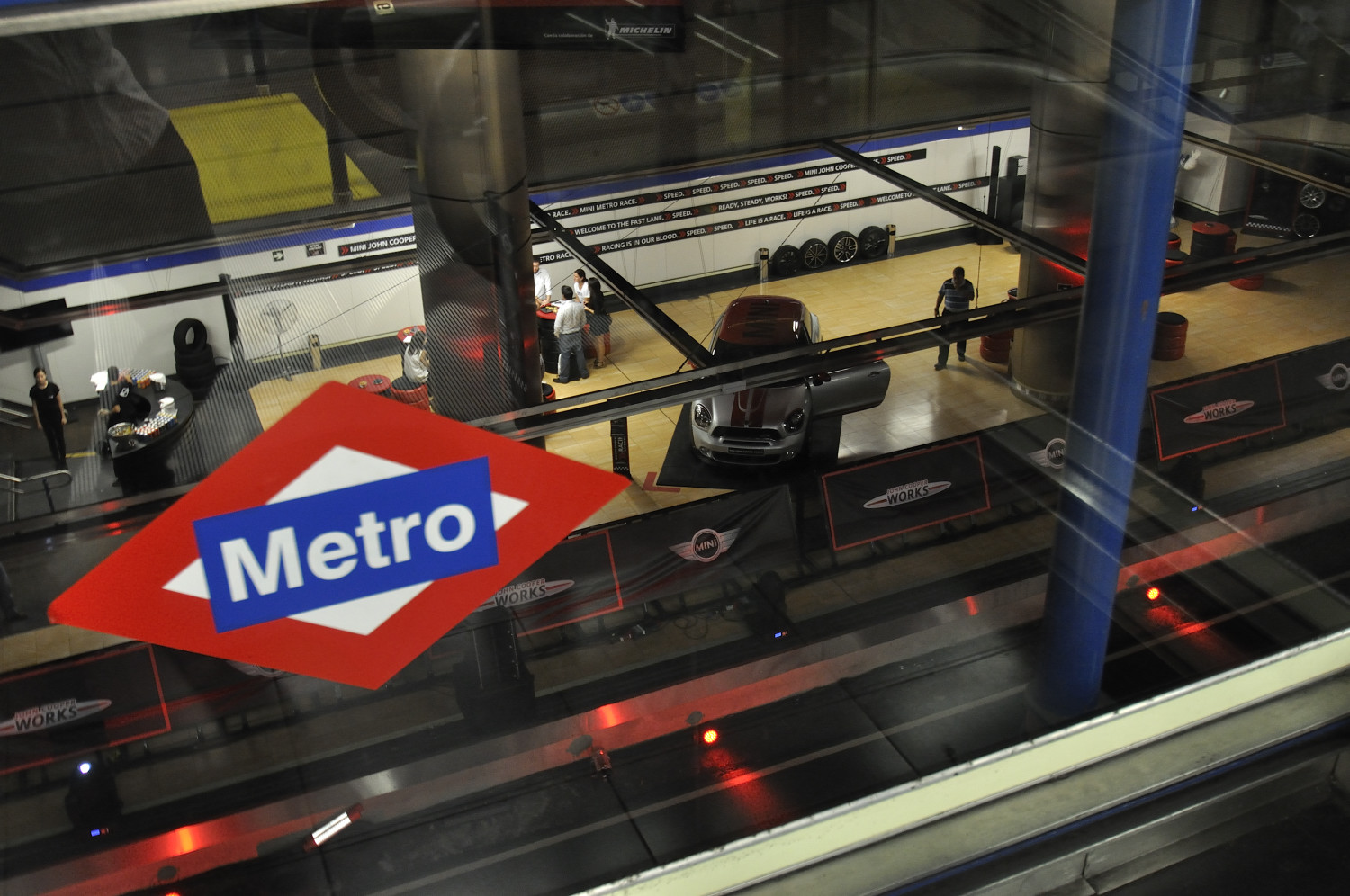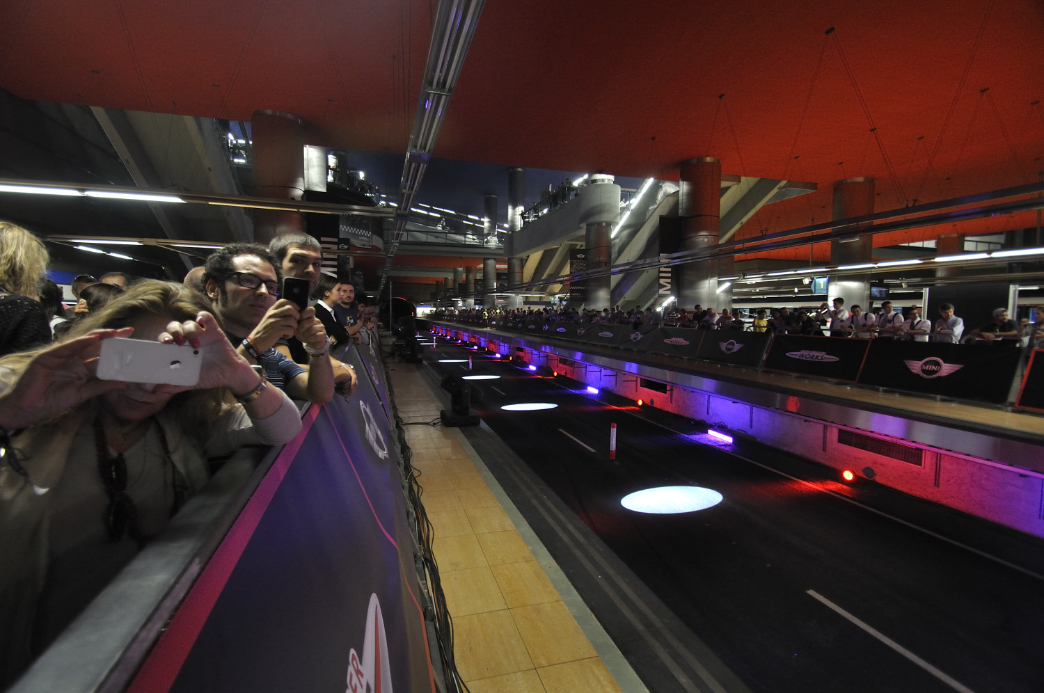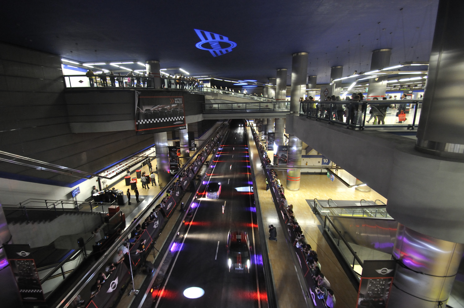 Uno de los andenes de metro de la estación de Chamartín se convirtió en una pista de carreras con coches de competición de la marca Mini John Cooper.